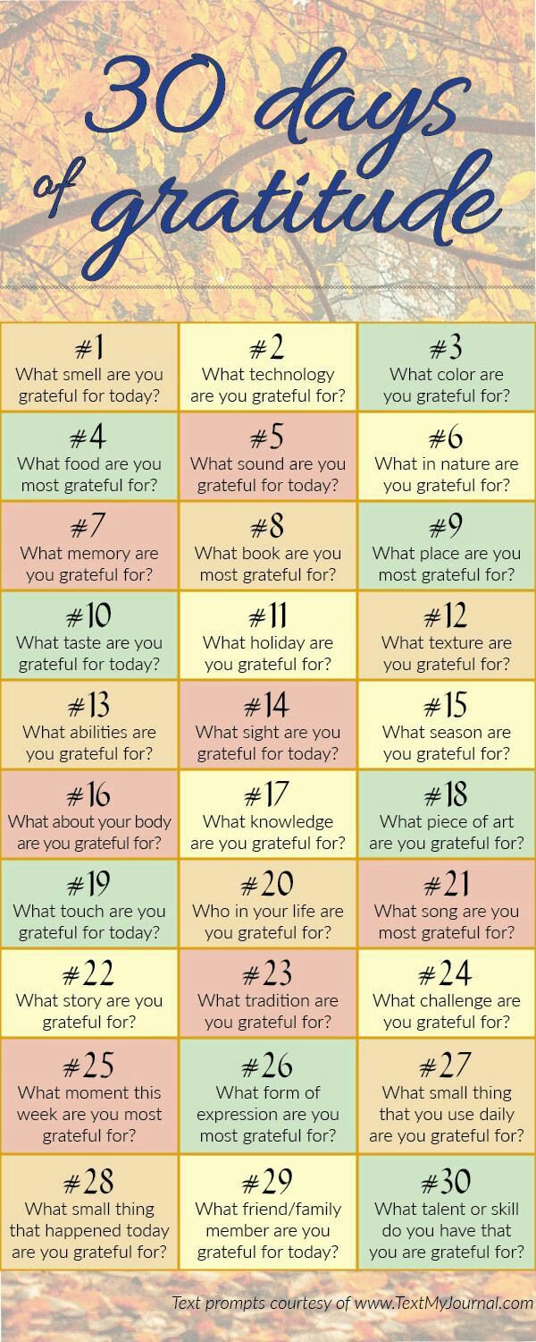 Deixo aqui um exercício de 30 dias de Gratidão que a Mari postou no twitter (ela tá fazendo lá mesmo), e acho que vou começar a fazer também! :)